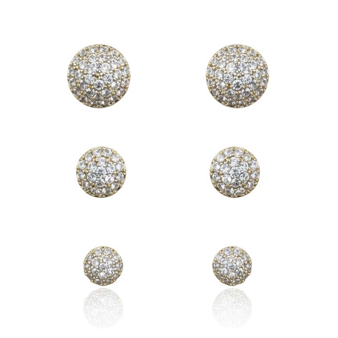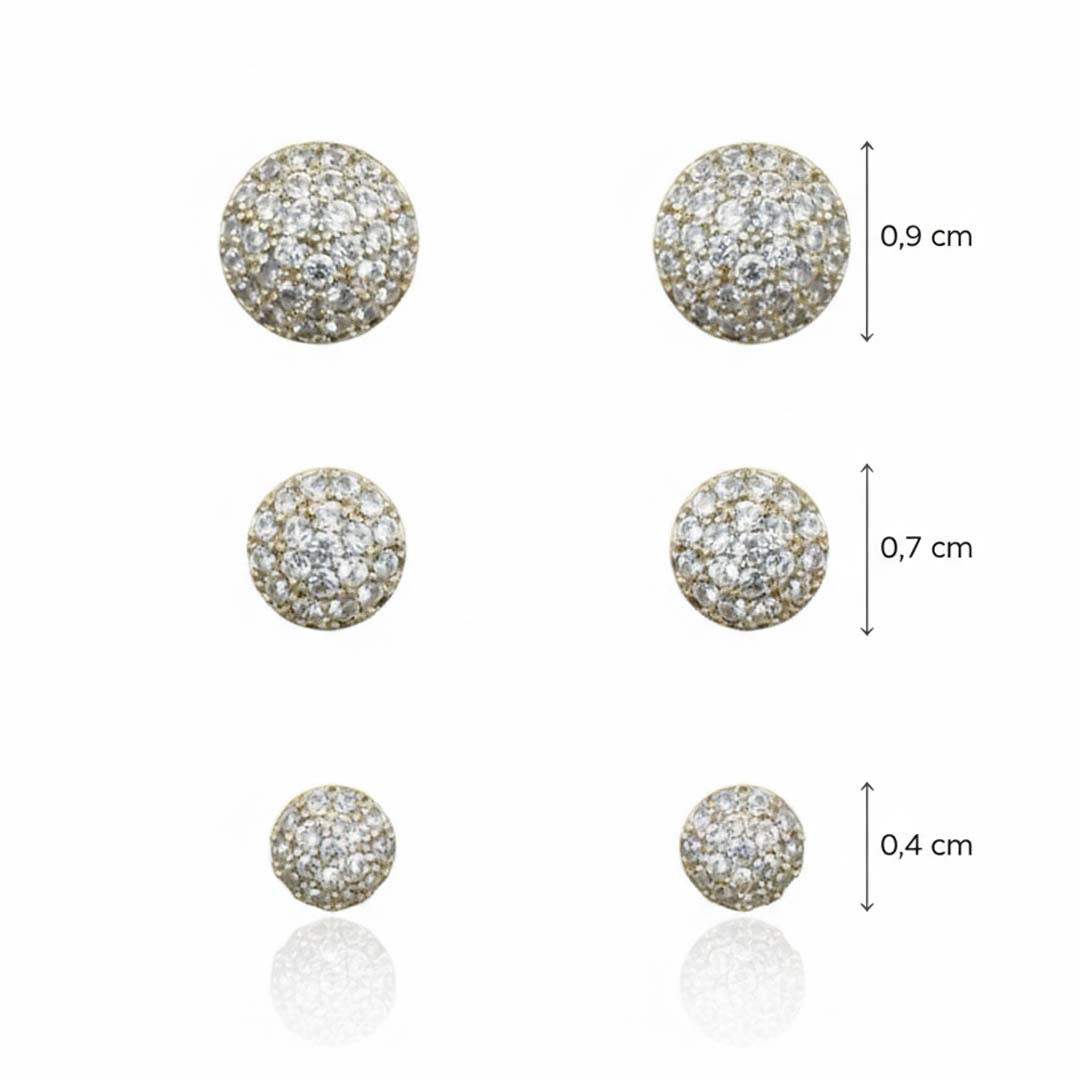 Brinco redondo com microcravação delicada, banhado em ouro 18k. Clássico e sofisticado, oferece brilho sutil e elegante, ideal para composições do dia a dia ou ocasiões especiais. Acabamento de alta qualidade, hipoalergênico e resistente ao uso diário.