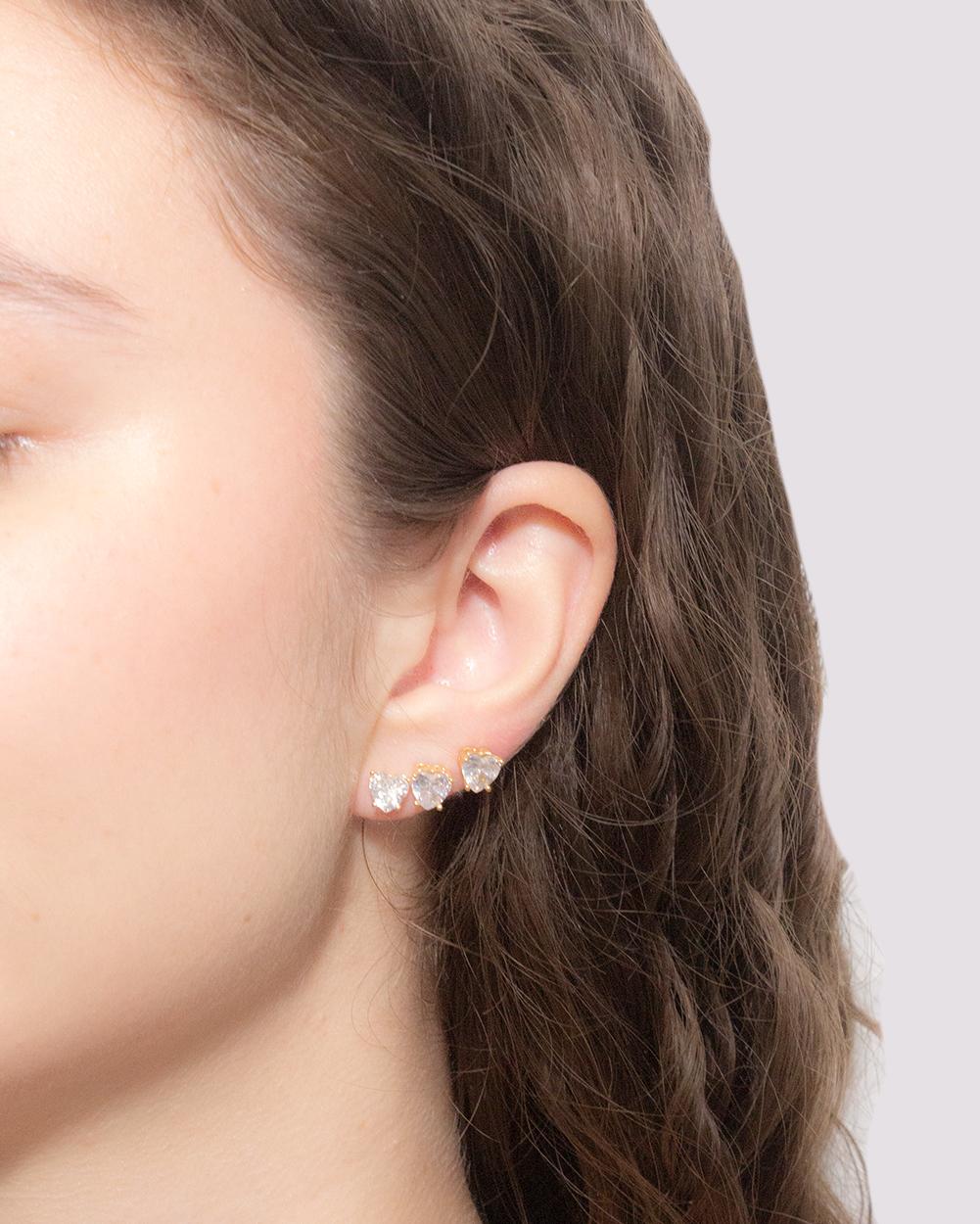 Delicadeza em dose tripla! O Brinco Trio Coração Cravejado é a escolha ideal para quem ama acessórios românticos e versáteis.