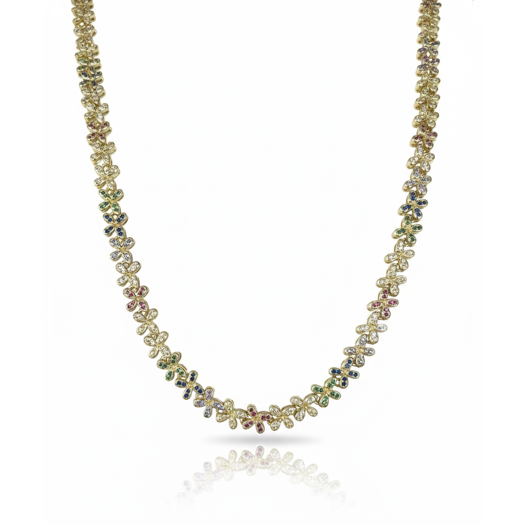 Choker Riviera Flores Cravejado Banhado em Ouro 18k