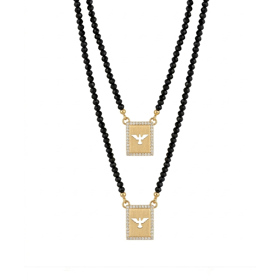 Colar (45cm + 5cm) Escapulário Cristais Espírito Santo Banhado em Ouro 18k