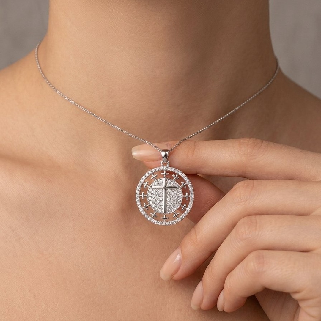 O Colar Mandala Crucifixo Cravejada, banhado em Ouro 18k, é uma peça encantadora que combina espiritualidade e elegância. Com um pingente em formato de mandala cravejado com pedras brilhantes e um delicado crucifixo ao centro, este colar simboliza proteção e devoção com um toque sofisticado.