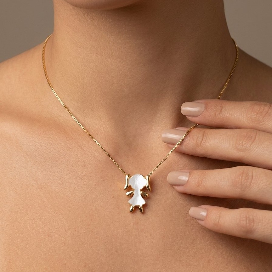 Encanto e delicadeza em uma única peça! O Colar Menina Madrepérola Banhado em Ouro 18k apresenta o formato de uma menina, com delicados detalhes em madrepérola que conferem um brilho suave e natural à peça. Banhado em Ouro 18k, esse colar é perfeito para quem busca um acessório elegante, com um toque de ternura e sofisticação. Ideal para dar um toque especial ao seu look diário ou presentear alguém querido com um símbolo de amor e cuidado.