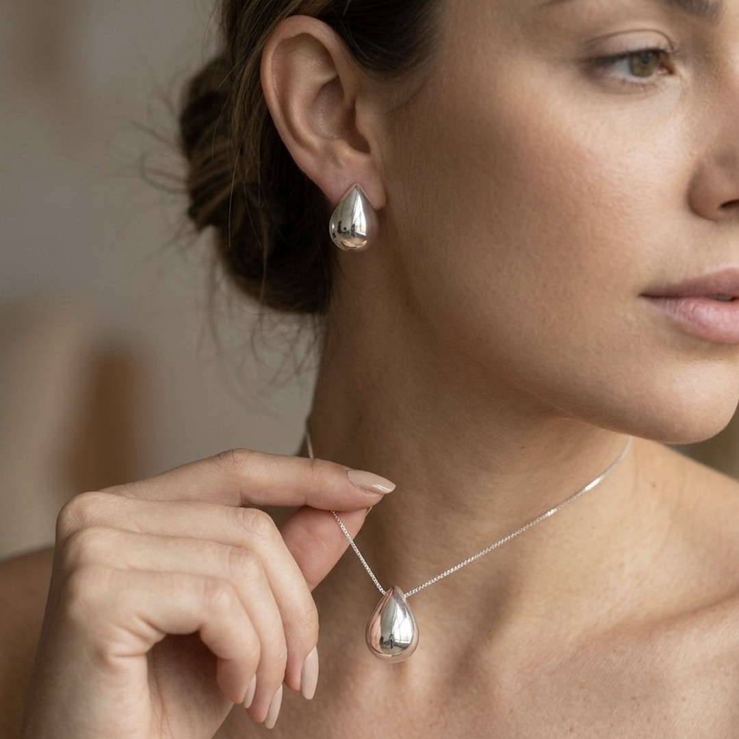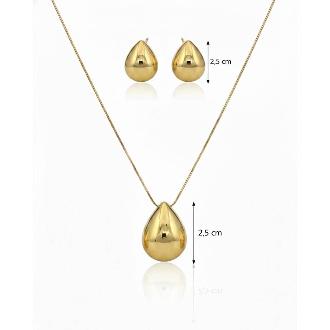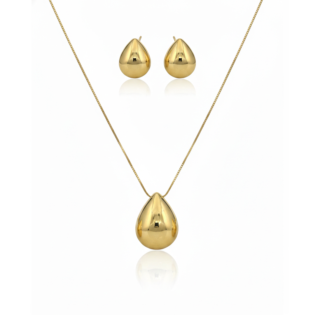 Conjunto Gota Lisa Banhado em Ouro 18K