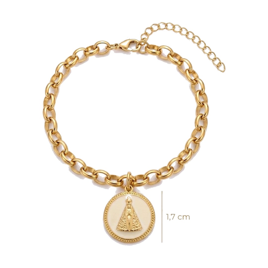 Pulseira (17cm + 5cm) Elo Português Nossa Senhora Redondo em Aço