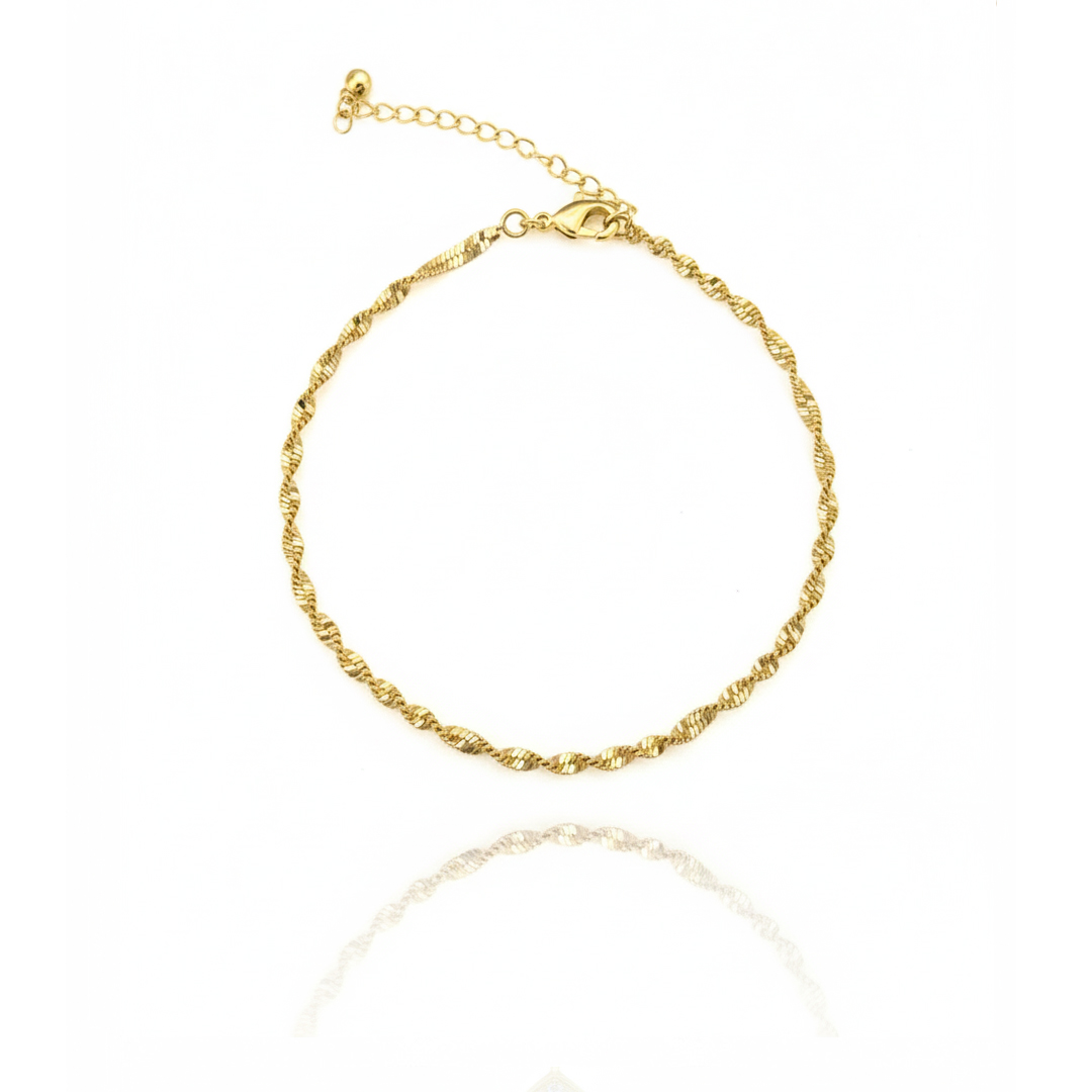 Pulseira Torcida banhada em ouro 18K. Moderna e elegante, com design entrelaçado e brilho sofisticado que valoriza seu visual. ✨